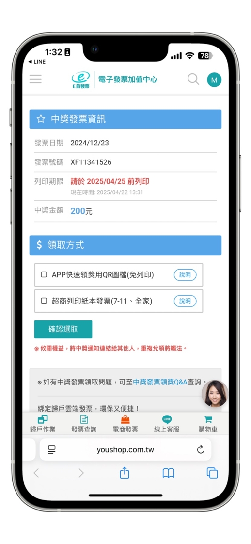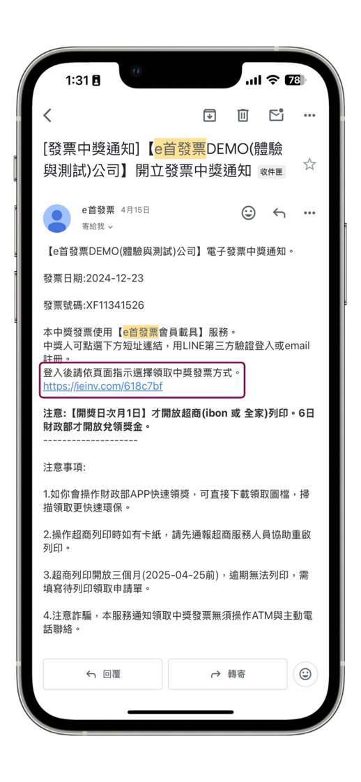 收到e首發票中獎發票E-MAIL通知如何領獎 ??