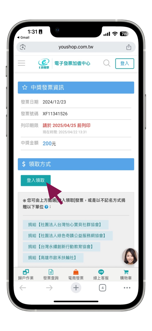 步驟二、點選 登入領取