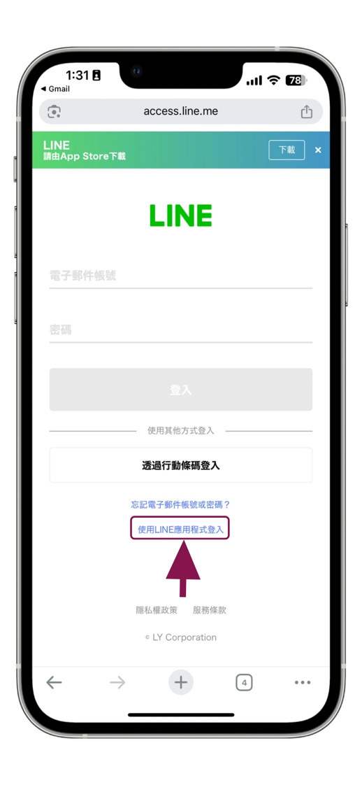 步驟四、點選 使用LINE應用程式登入
