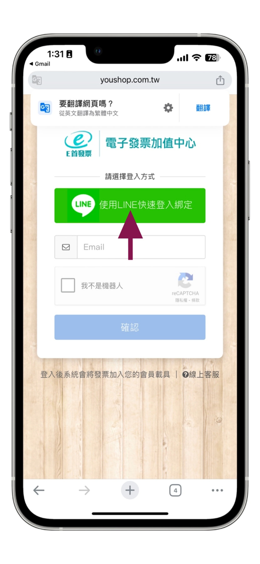 步驟三、點選 使用LINE快速登入綁定,驗證非AI機器人